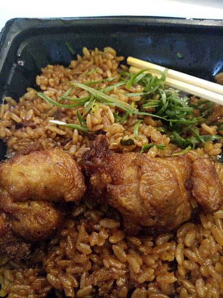 隱微的辣味。炒飯味道濃郁,甜鹹味,和蔥一起吃有提升美味程度。簡單來說,太甜、不辣。雞唐揚就一般微波雞的味道。
